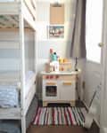 Name: Lily, Oli, and Chloé ( 5, 4, 2) Location: Le Plateau-Mont-Royal, Montreal — Canada Years ago, we shared our Lily and Oli’s shared room on Apartment Therapy. Since then, we’ve added our third child, our daughter Chloé to the room. Now that we are officially crib-free, and still happily using one bedroom for our three little ones, I thought it was time to share the many changes we’ve made.