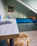 This Kid’s Green and Blue Bedroom Is on A Houseboat — And There’s Storage Galore